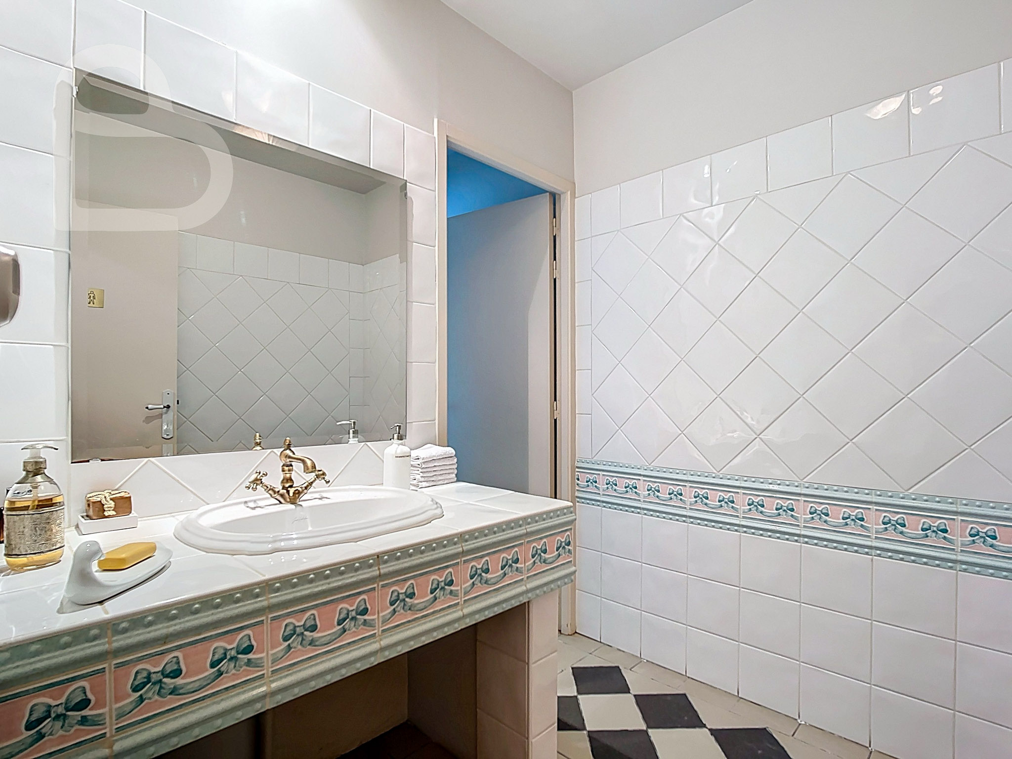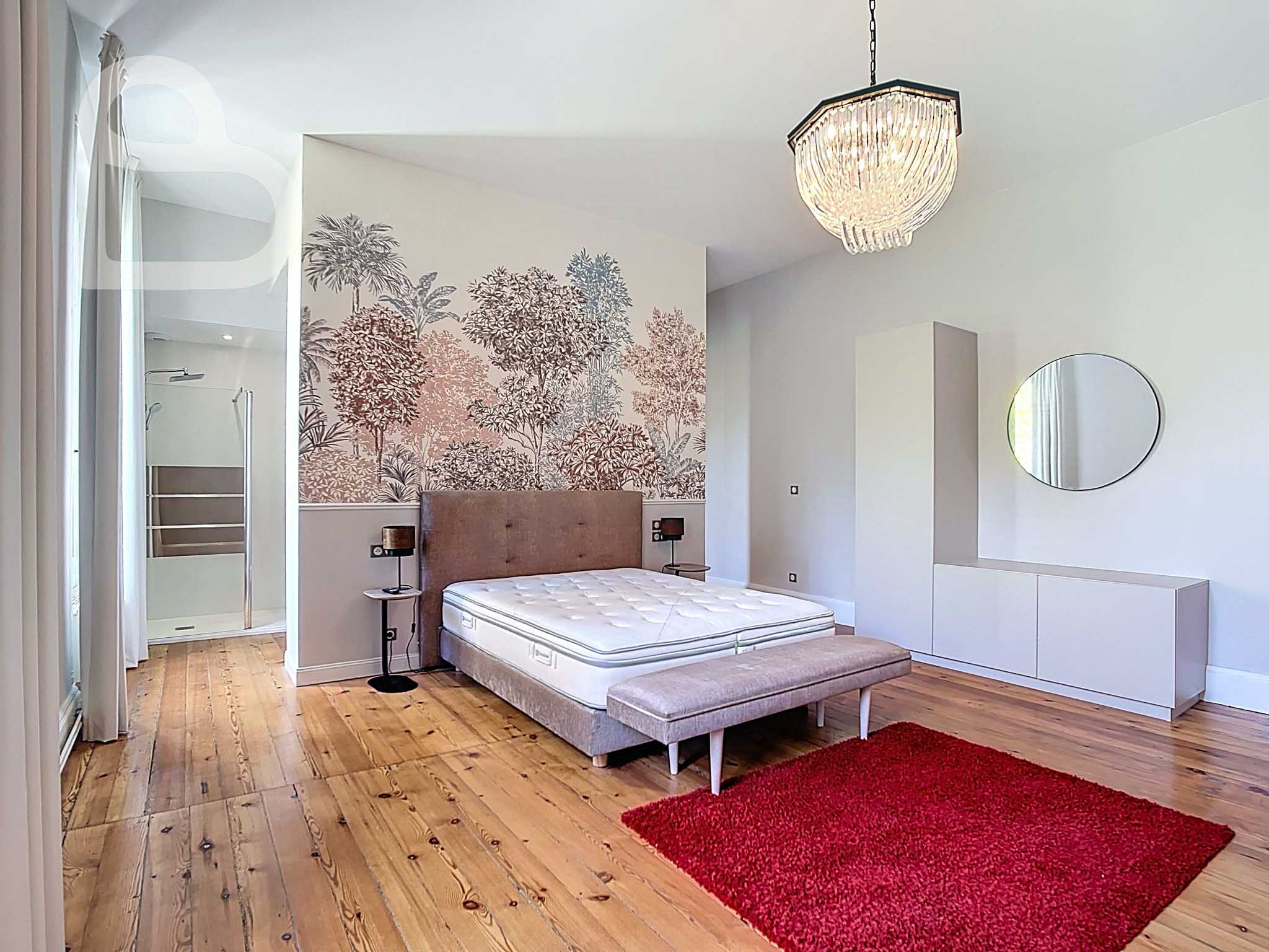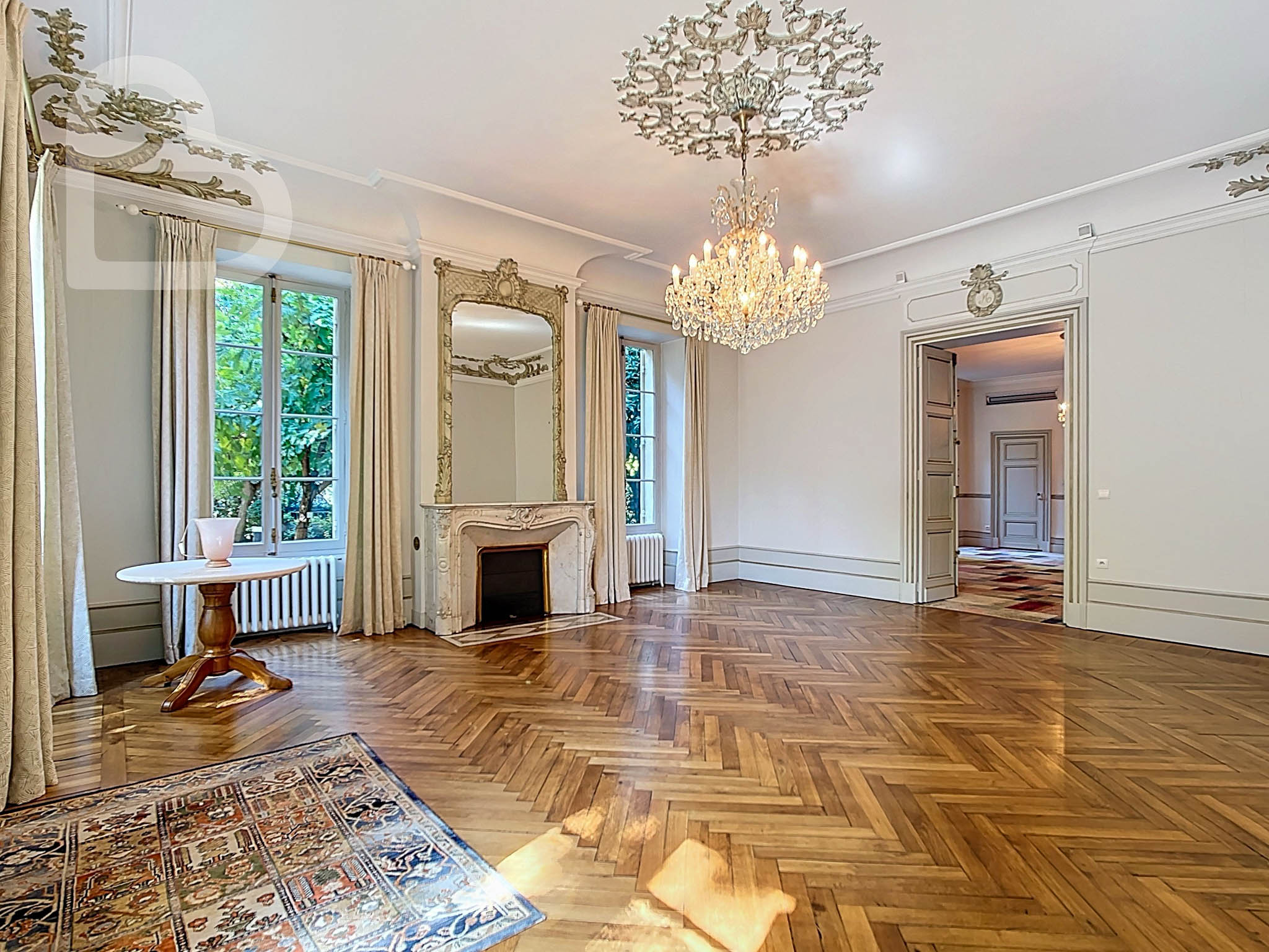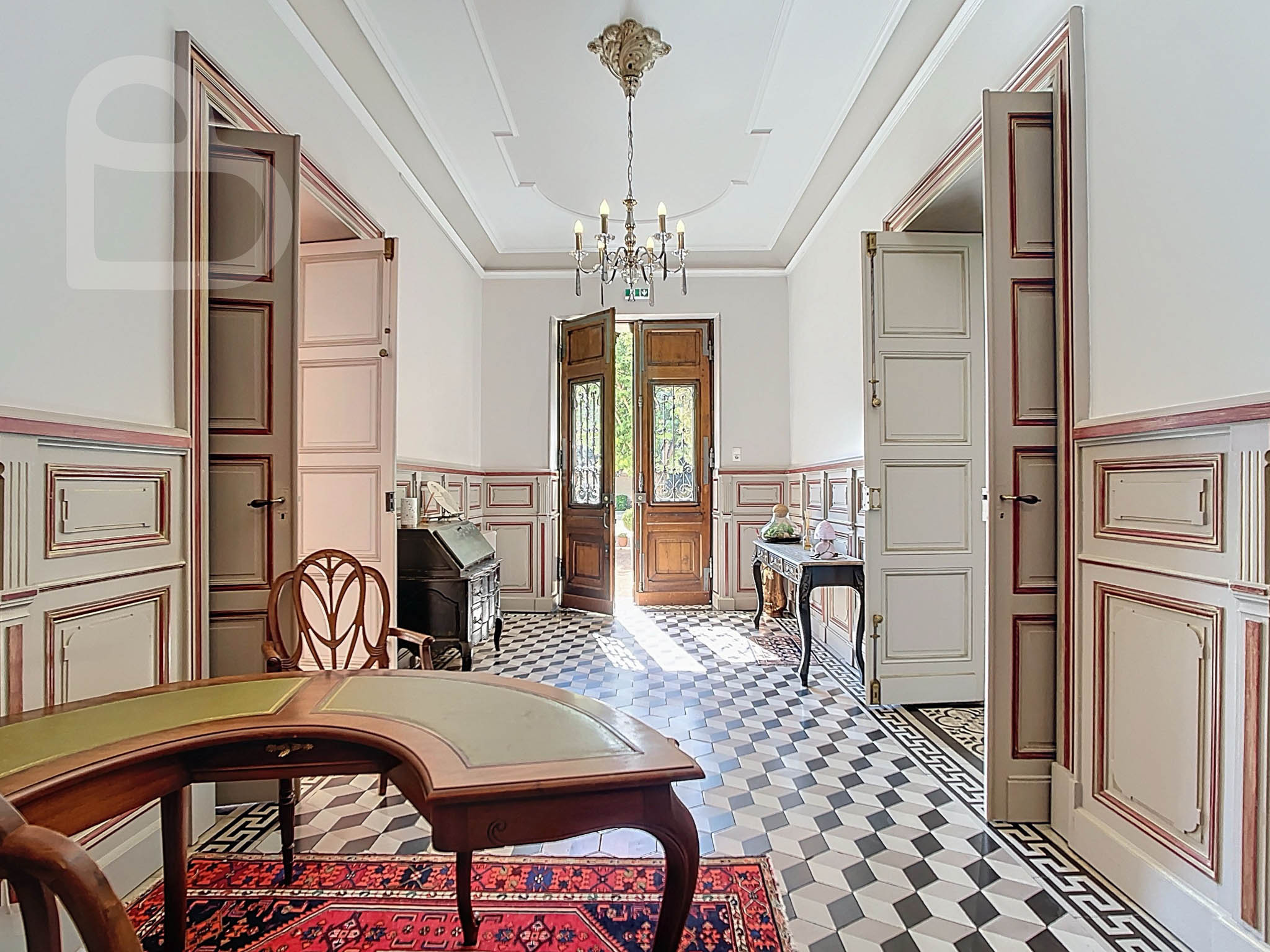 This stately home combines timeless charm with modern comfort. Behind the monumental white Bordeaux stone façade, you will discover a majestic entrance hall and three spacious salons on the ground floor, richly decorated with original features. Solid parquet flooring, fireplaces, authentic panelling, graphic-motif cement tiles, tall wooden windows and ornate ceilings bring the grandeur of the Belle Époque to life.