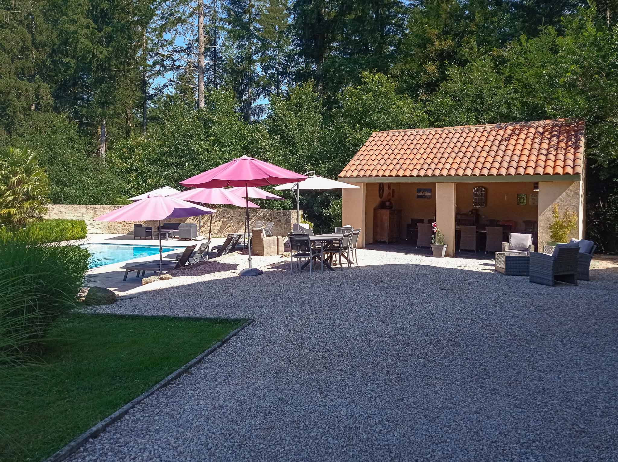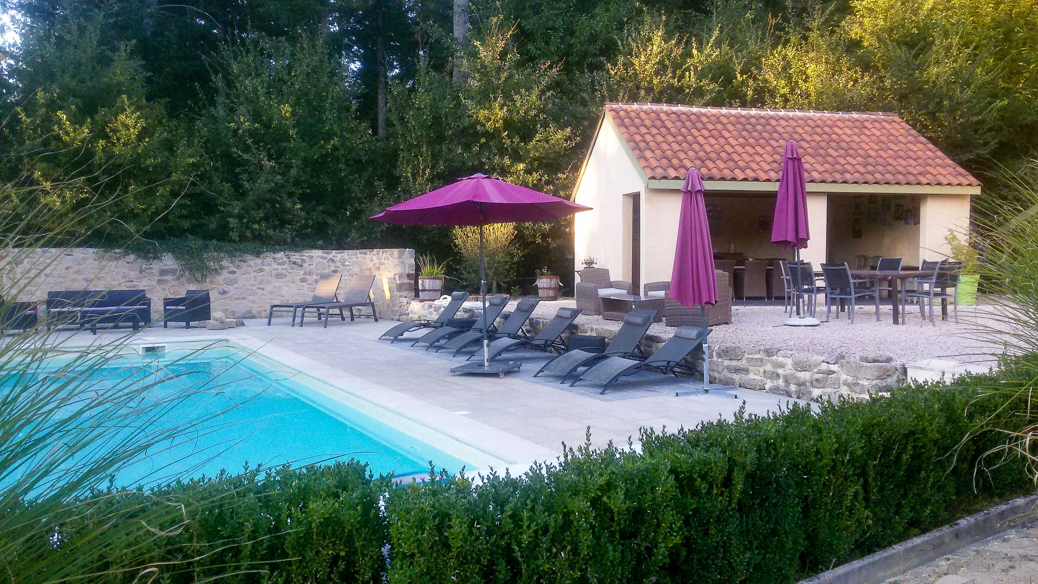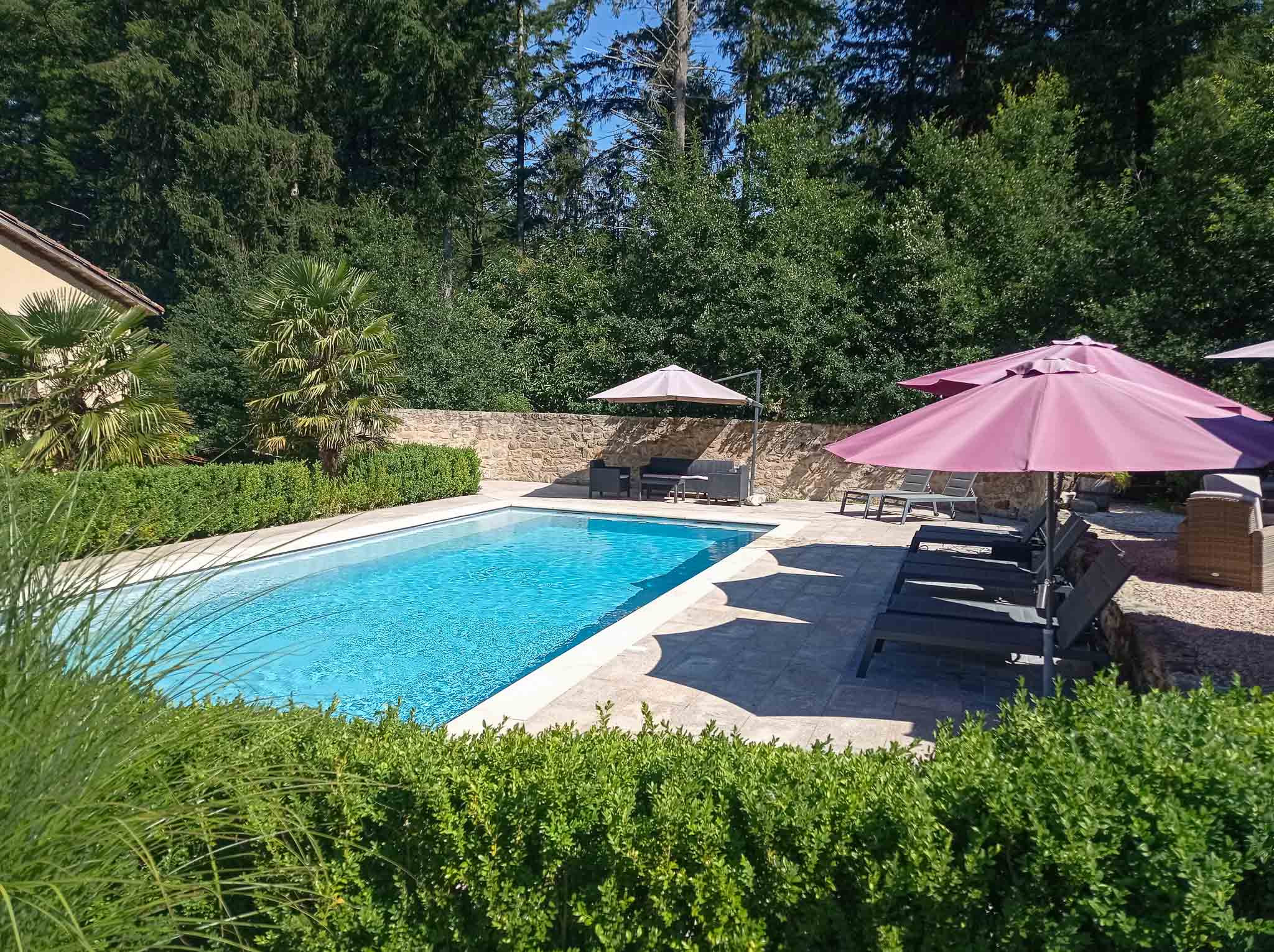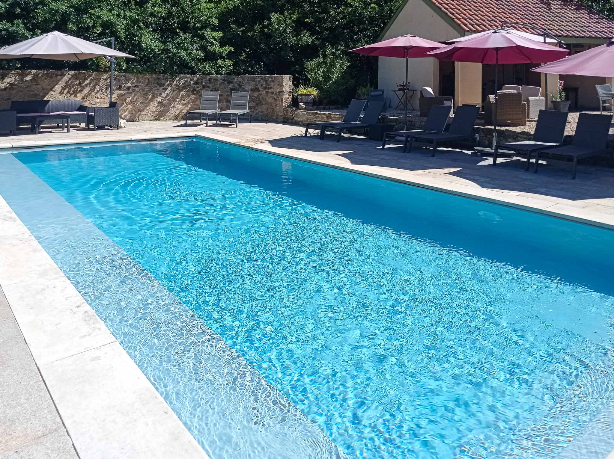 Tussen het hoofdverblijf en de gastenwoning ligt het zoutwaterzwembad, dat twee jaar geleden volledig werd vernieuwd. Aansluitend bevindt zich een mooi en recent gebouwd poolhouse.