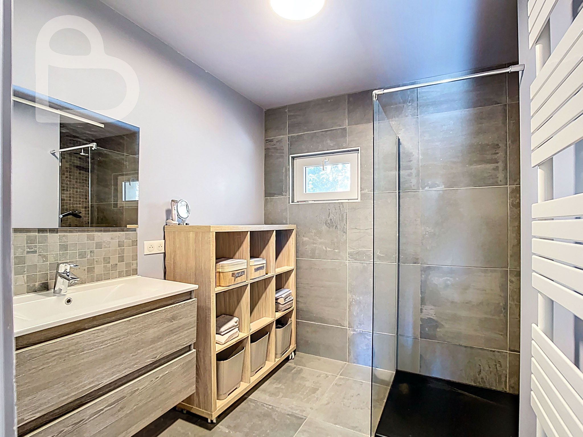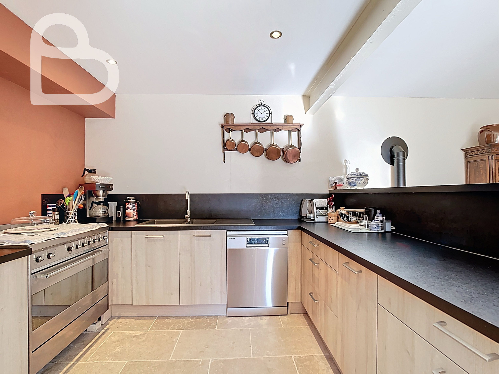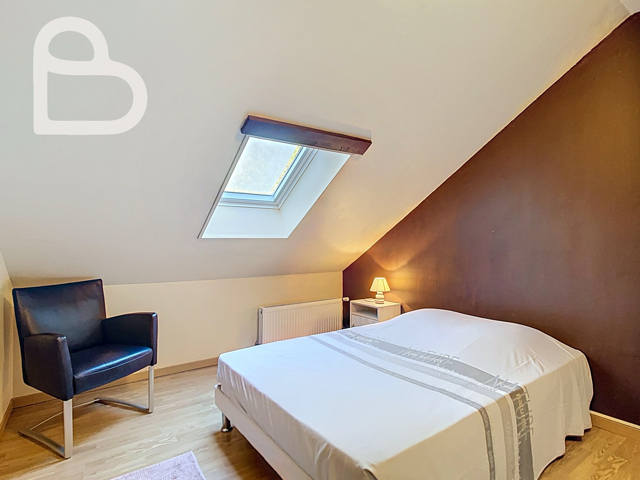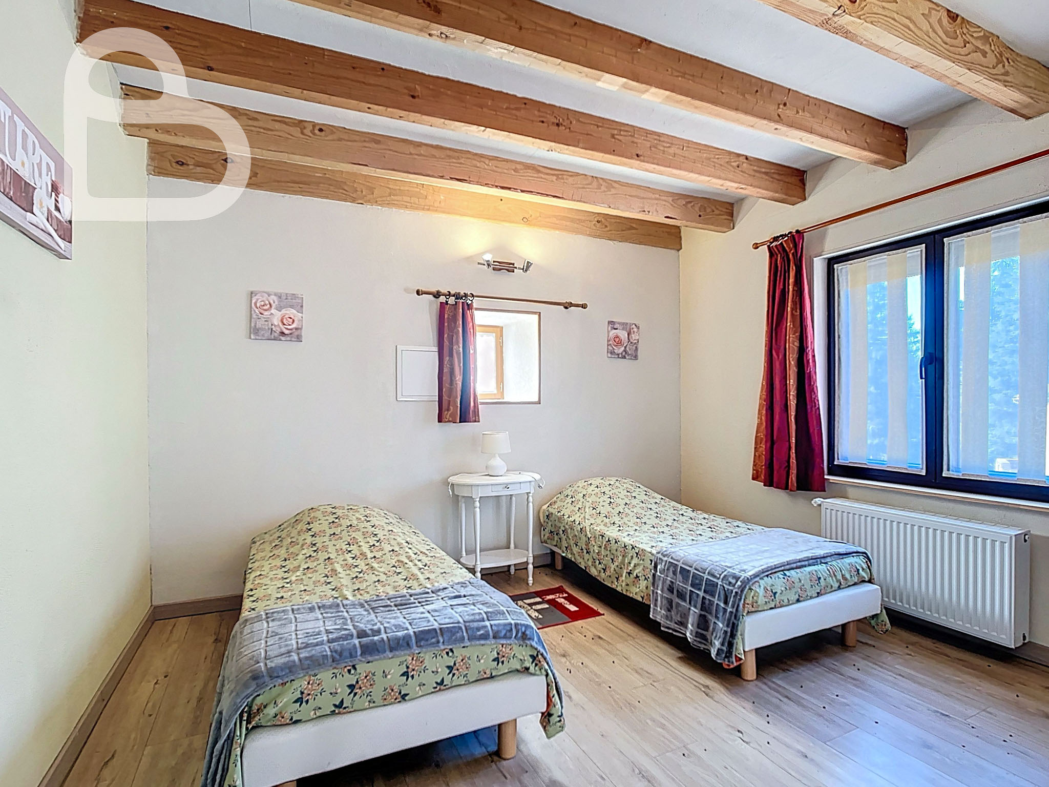 Op het tuinniveau zijn nog twee ruime slaapkamers, beide met een rechtstreekse toegang naar buiten. Eén van deze kamers herbergt een authentieke, intacte broodoven, wat bijdraagt aan het karakter van de woning.