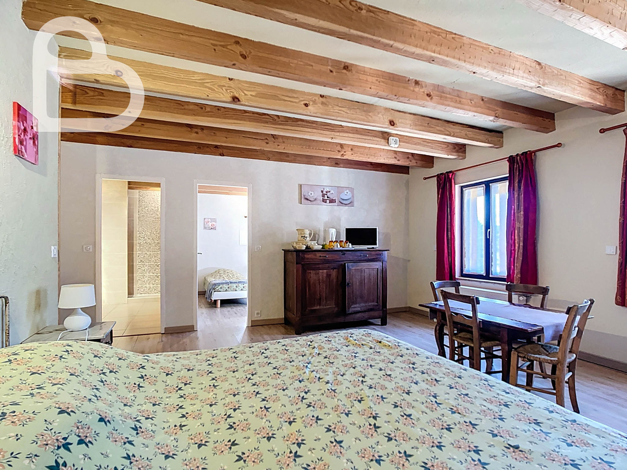 Aan de rechterzijde van het gastenverblijf bevindt zich op de verdieping een gîte met een leefruimte en open keuken, een wasplaats en een badkamer. Op de bovenverdieping van de gîte zijn drie slaapkamers ingericht. De gîte beschikt over twee eigen terrassen.