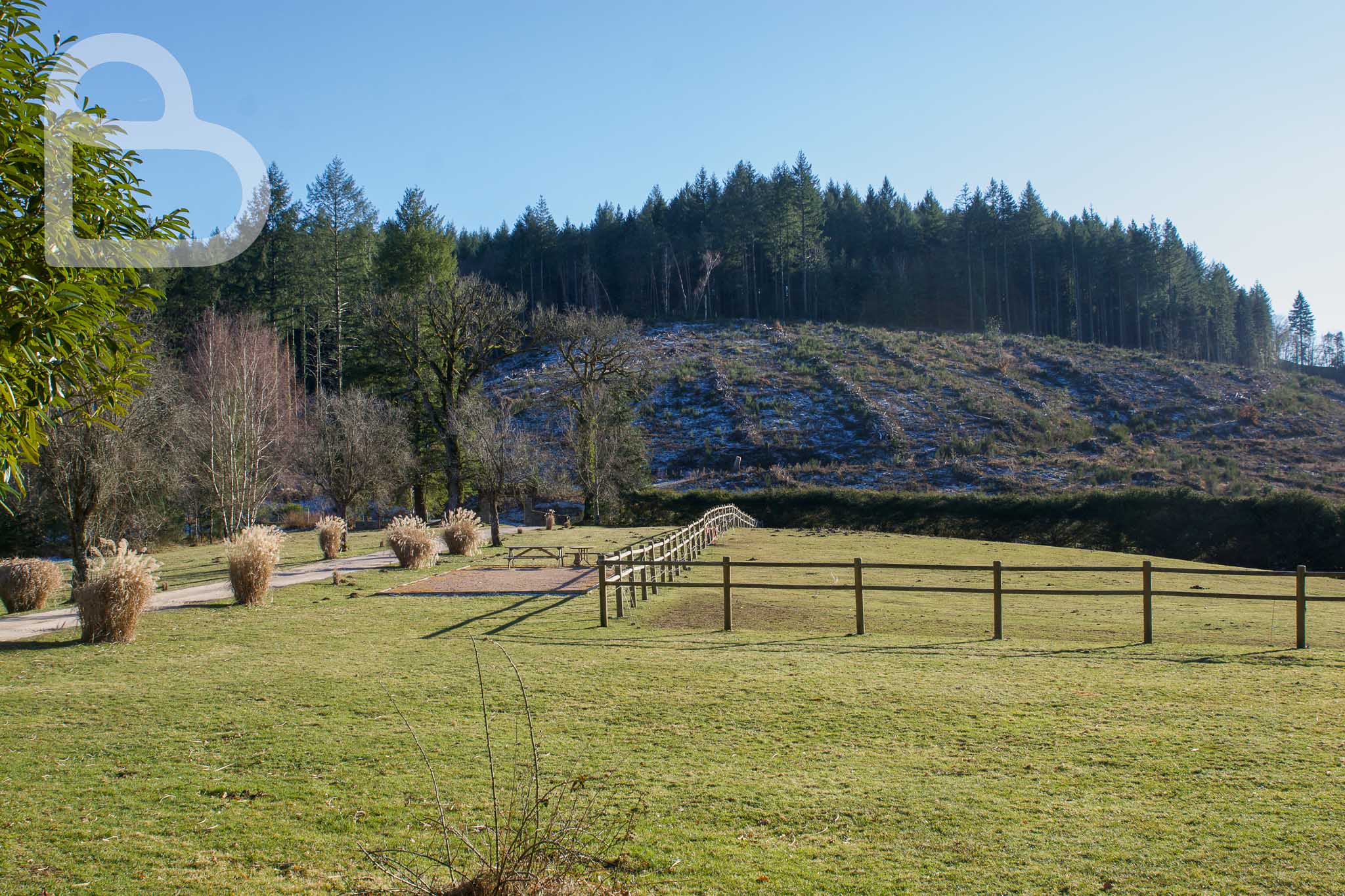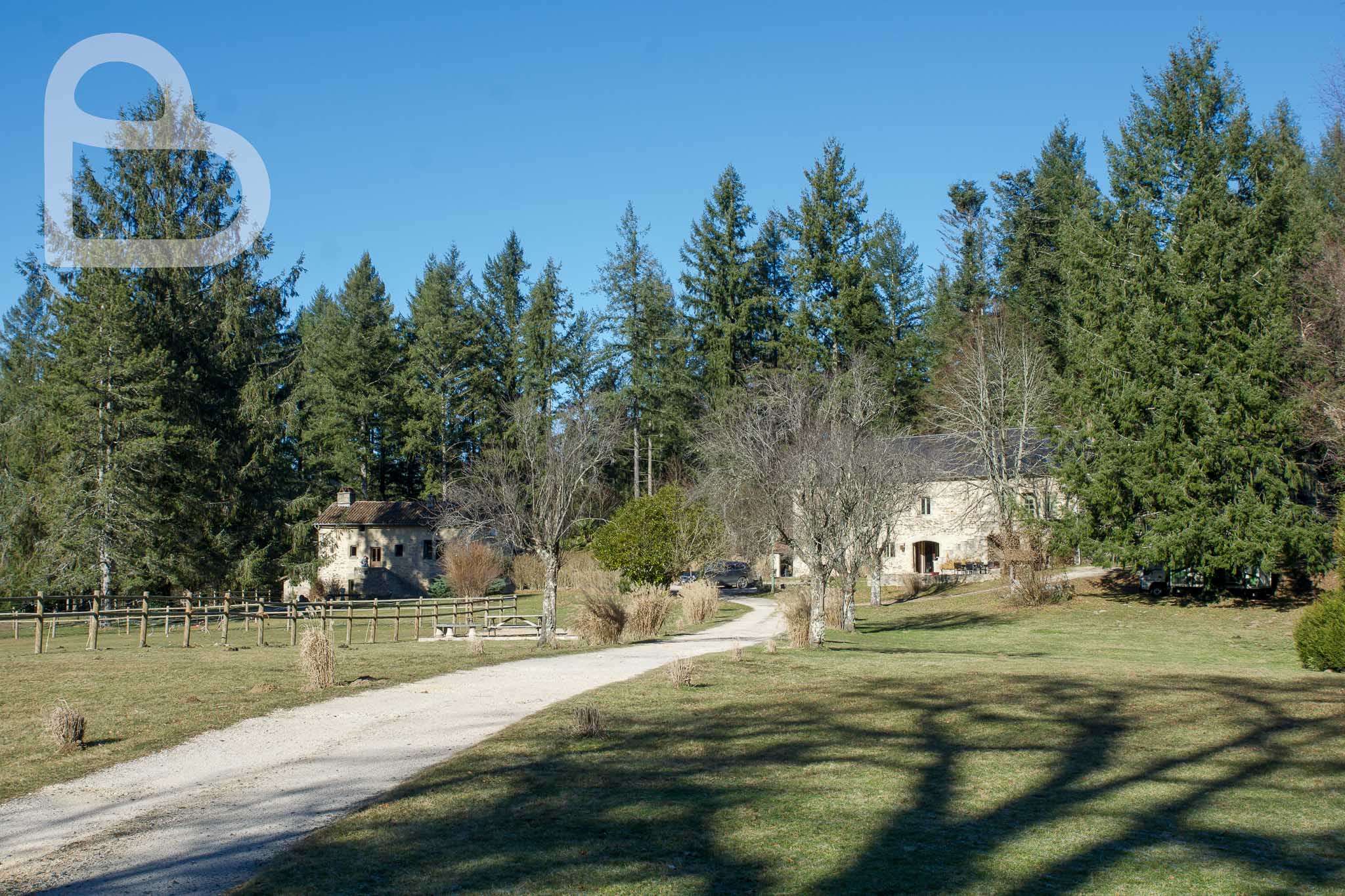 De volledig omheinde eigendom is omgeven door bossen en weiden en straalt rust en privacy uit.