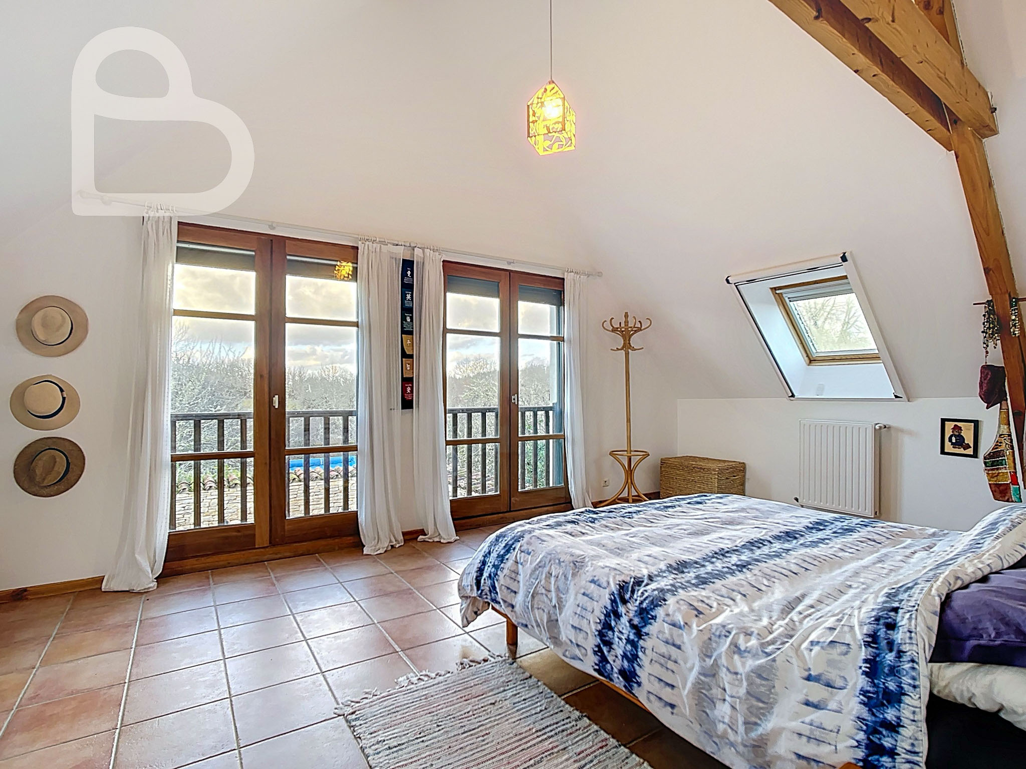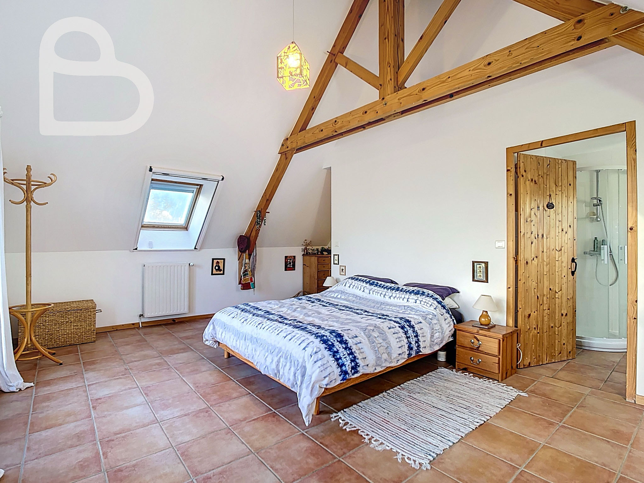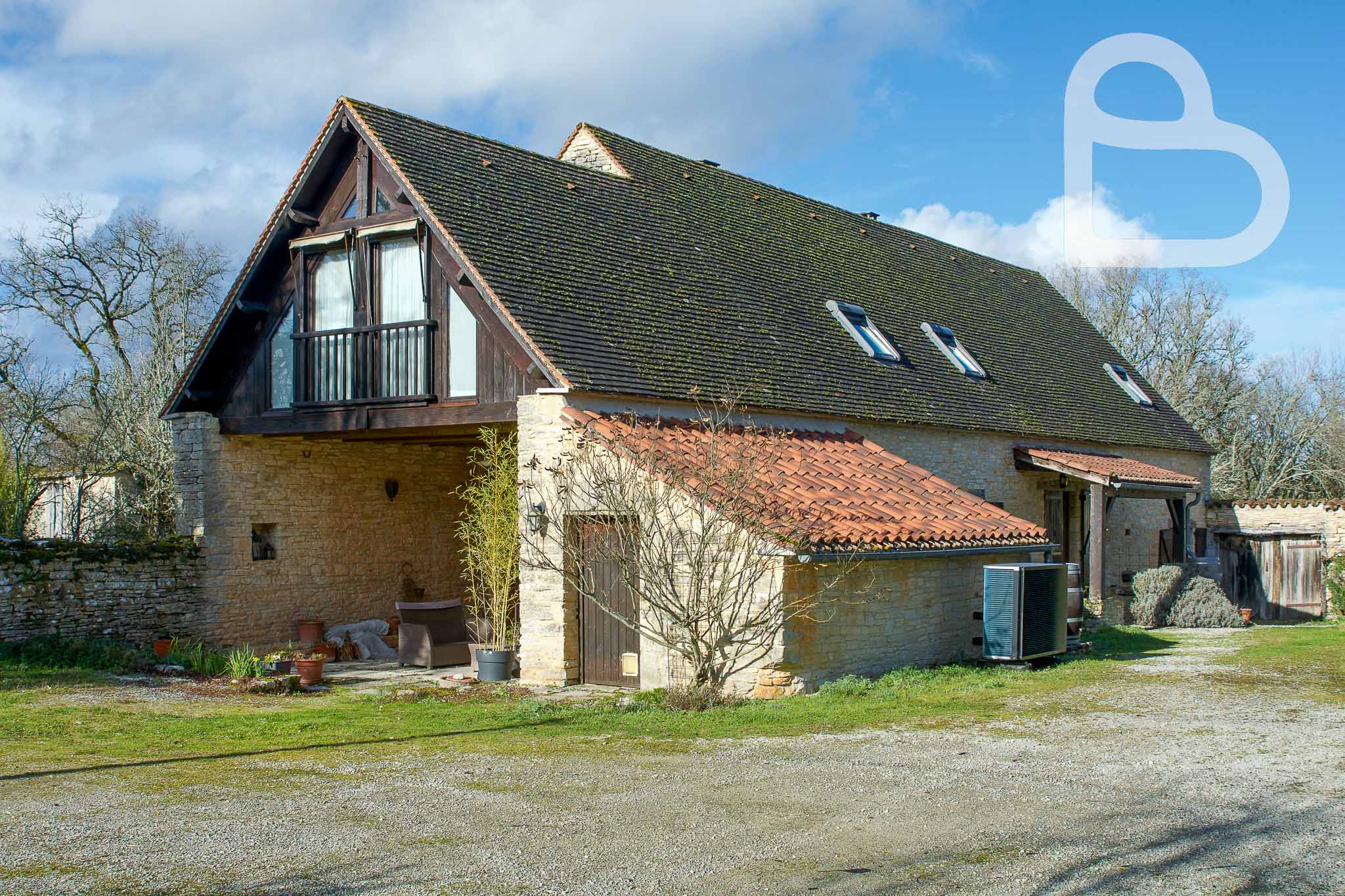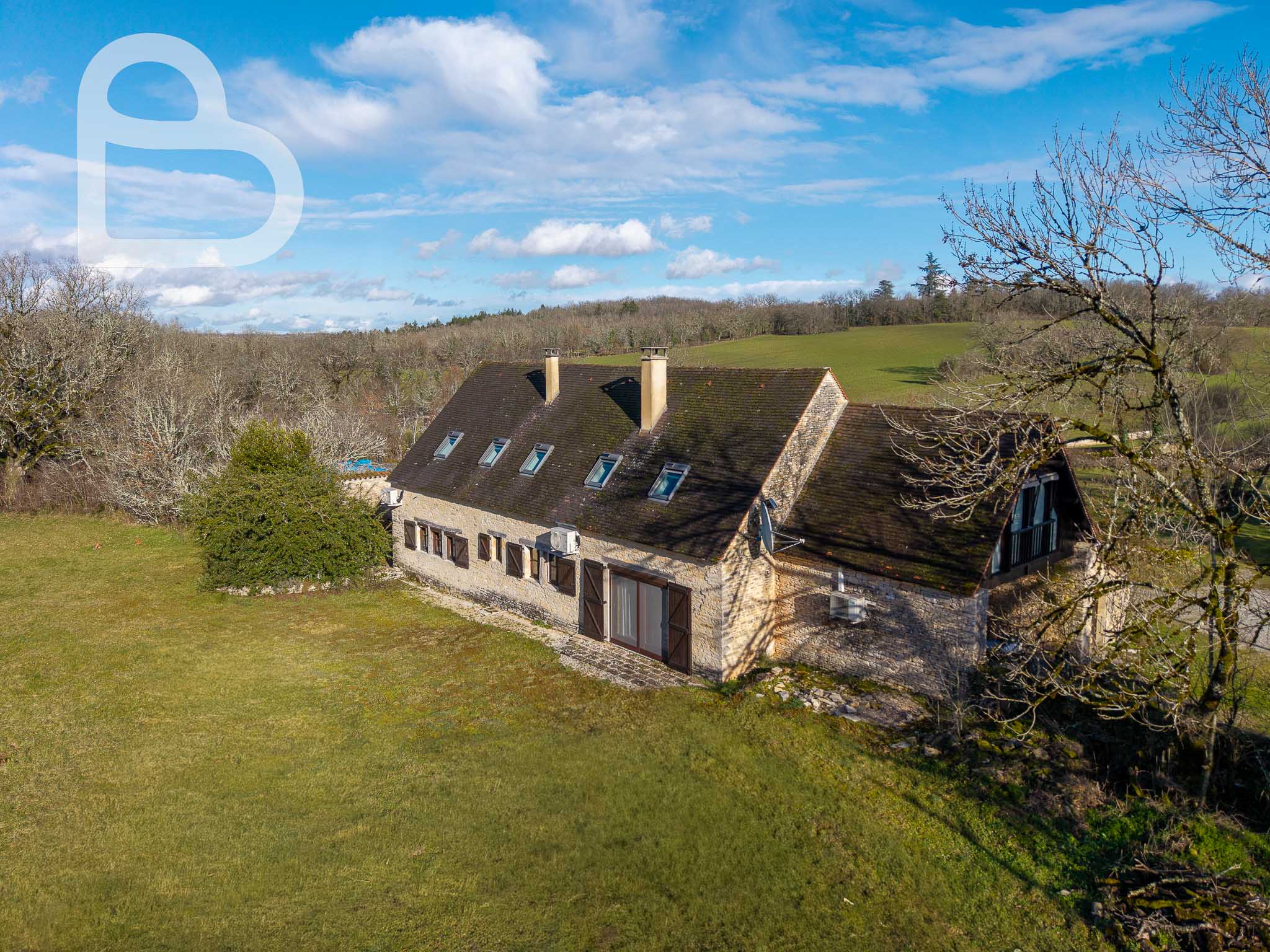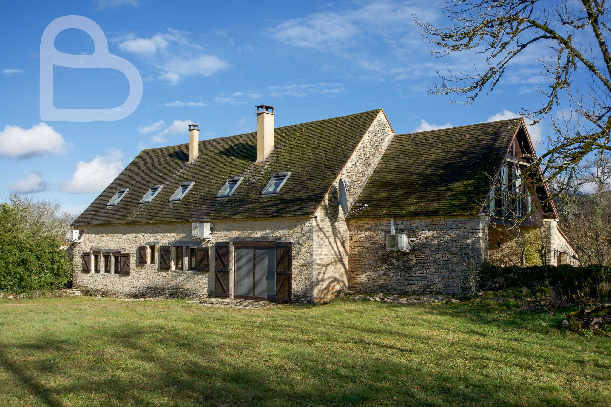 Le jardin paysager accueille une piscine de 12 x 6 mètres, entièrement sécurisée par un mur en pierre et harmonieusement intégrée dans son environnement naturel. En fond de parcelle, un bois privé, faisant partie intégrante de la propriété, préserve l’intimité et renforce le sentiment de calme absolu.