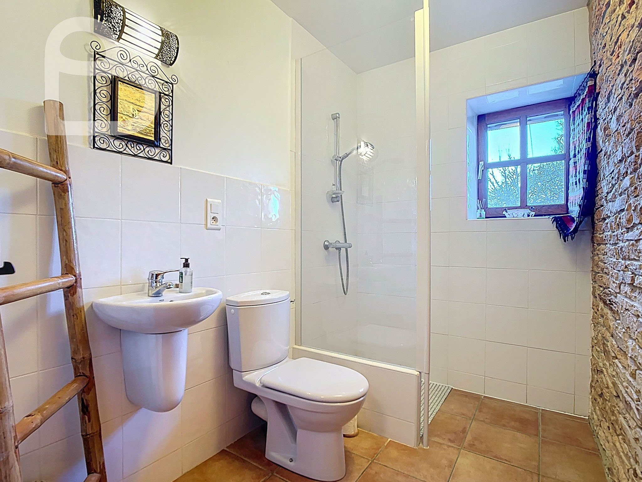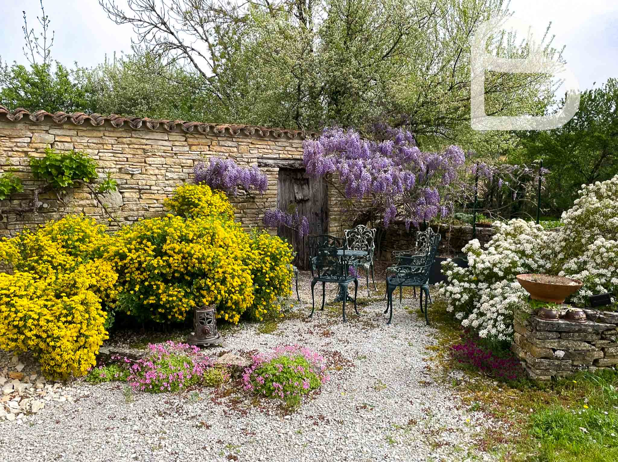 De charmants murets en pierre, une petite grange ancienne et un superbe puits en pierre apportent un cachet authentique à l’ensemble, tandis que les terrasses bordées de murs en pierre invitent à profiter pleinement des extérieurs.