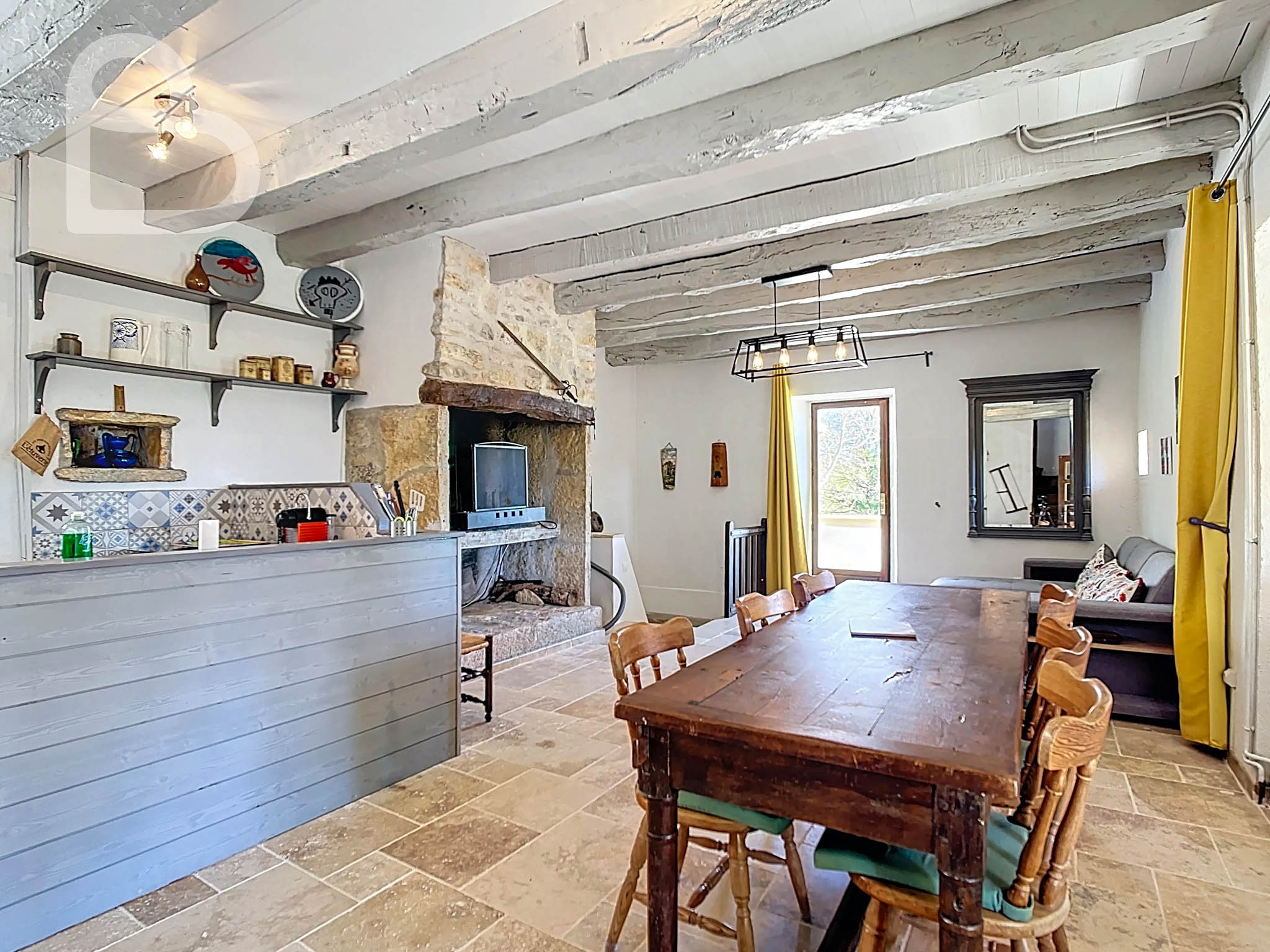 La maison principale (127 m²), datant de 1710, séduit par ses éléments d'origine soigneusement préservés. Au rez-de-chaussée, une pièce de vie chaleureuse avec cantou (cheminée traditionnelle) et four à pain, des sols en pierre naturelle et des plafonds hauts aux poutres apparentes. Une cuisine équipée s'ouvre sur la terrasse, complétée par une buanderie avec poêle à bois et un sol en pierre remarquable, ainsi qu'une salle de bain avec WC. À l'étage, accessible par un escalier en pierre, se trouvent un salon avec cantou, une souillarde aménagée dans le pigeonnier, deux chambres avec parquet et poutres apparentes, et une salle de bain avec WC. Les combles sont aménageables, offrant des possibilités d'extension.
