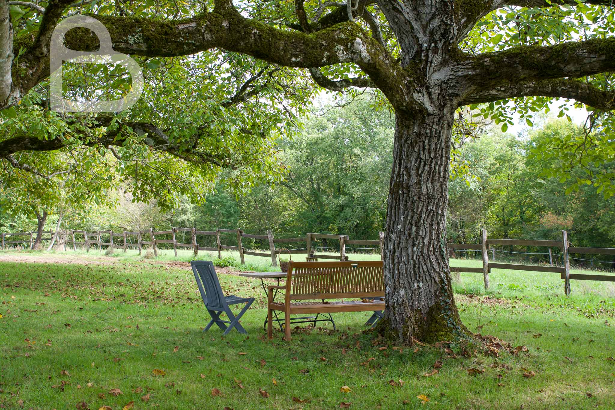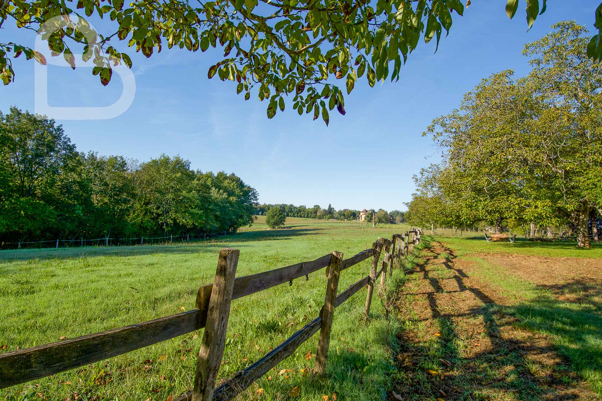 Les 6 hectares se composent d’environ 4 hectares de prairies clôturées en bois avec abreuvoir, idéales pour les chevaux, ainsi que de 2 hectares de bois, d’un potager et d’un verger.