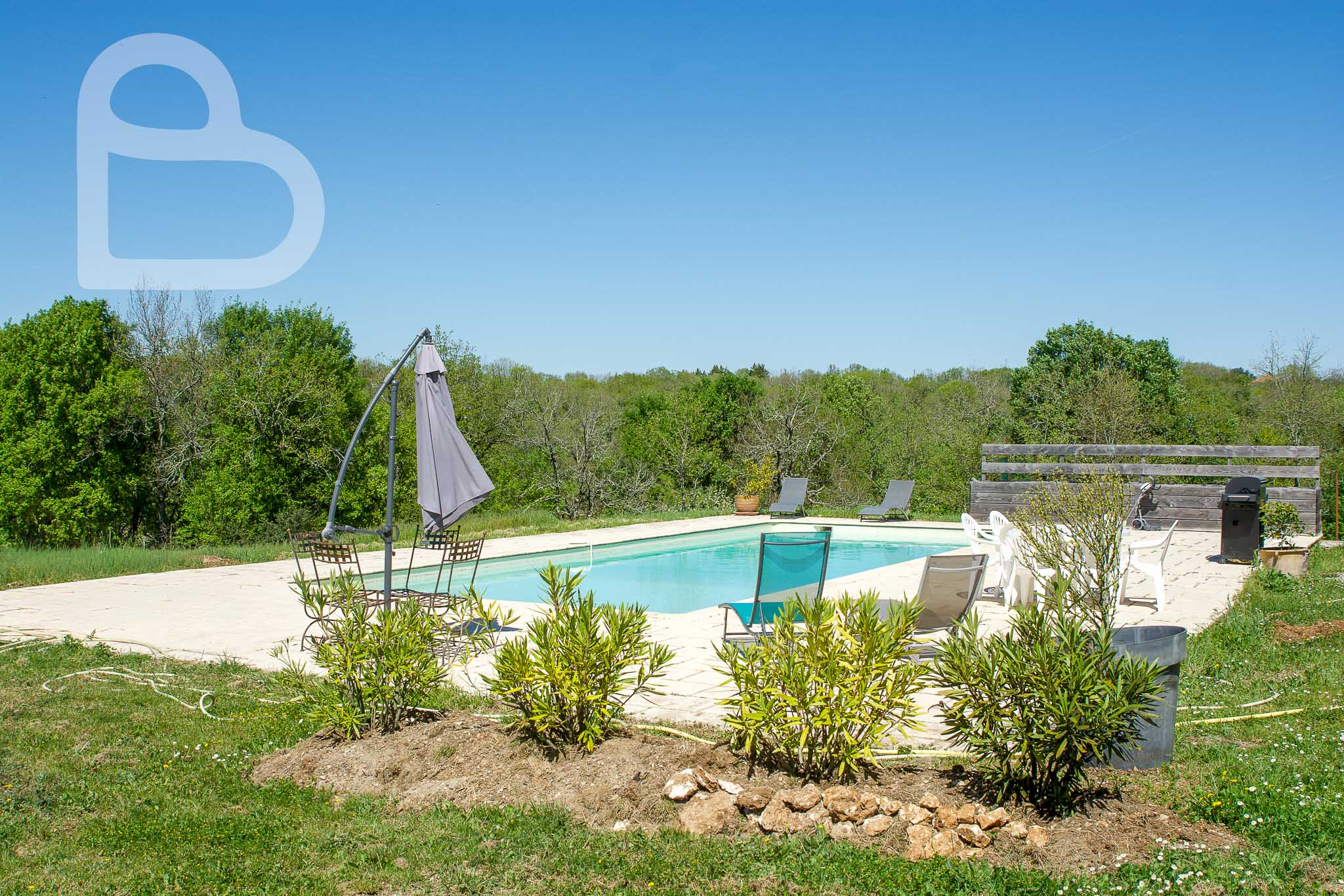 La piscine et sa terrasse ensoleillée offrent un cadre privilégié pour se détendre en toute intimité tout en profitant d’une vue dégagée exceptionnelle.